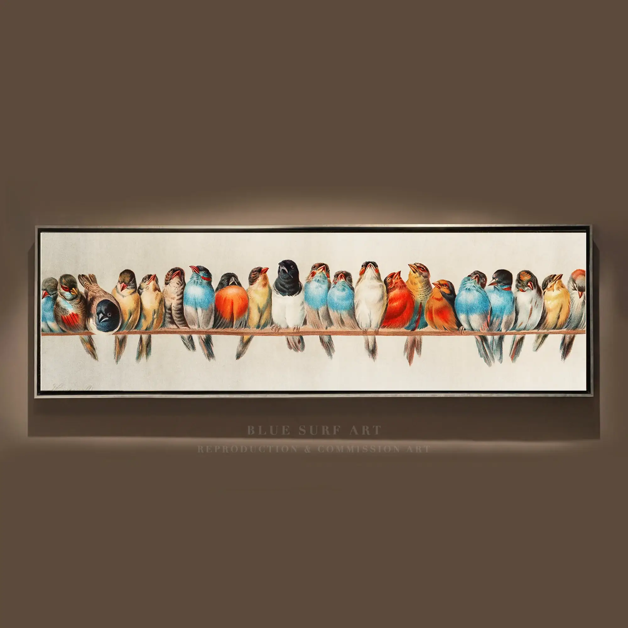 Bring the charm and natural beauty of Hector Giacomelli’s A Perch of Birds into your home or office. This exquisite hand-painted reproduction captures the delicate details, vibrant colors, and serene atmosphere of the original masterpiece, celebrating Giacomelli’s remarkable skill in depicting birds and nature.