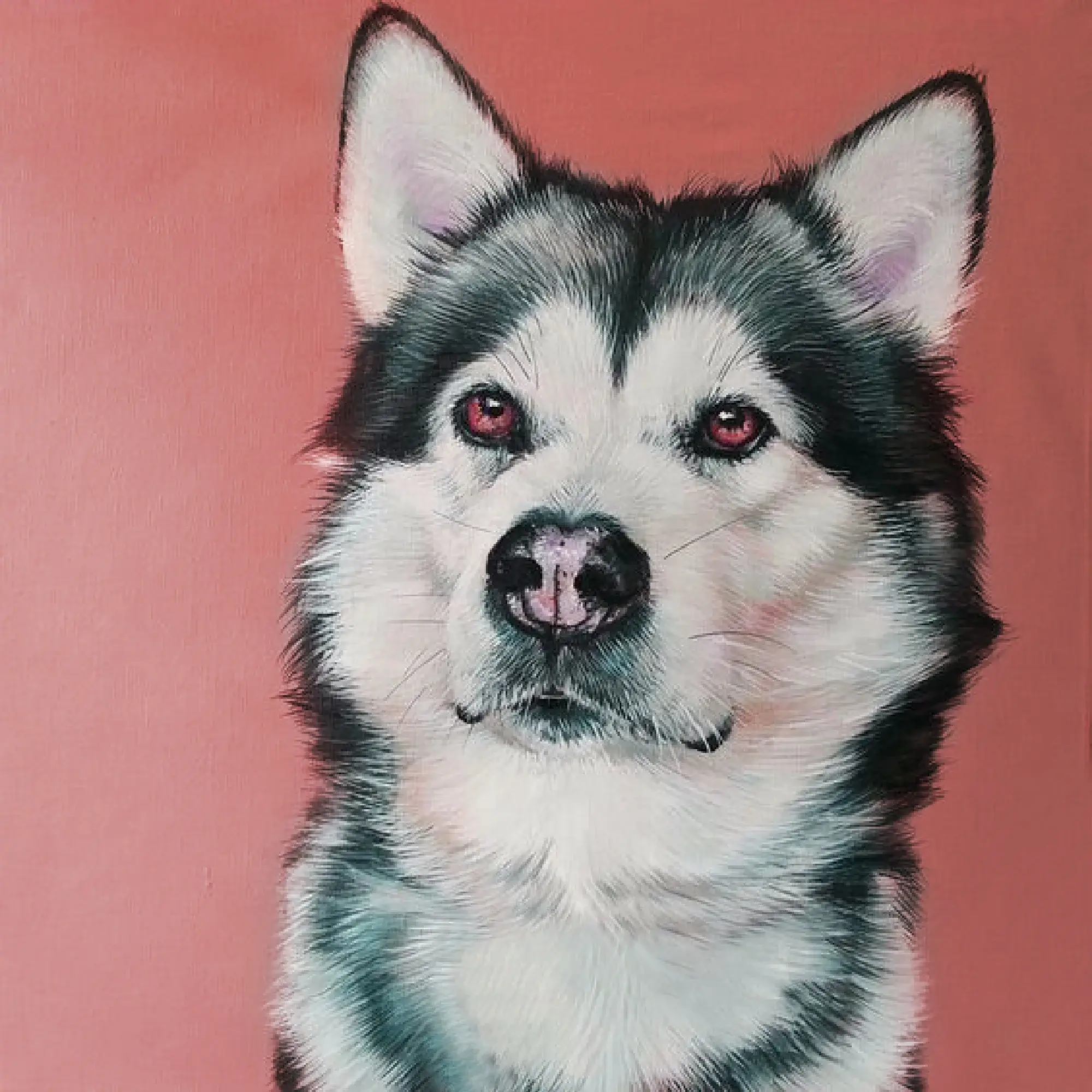 Each brushstroke is applied with care to bring out the Alaskan Malamute’s strength, warmth, and intelligence, creating a timeless tribute to this beloved breed.