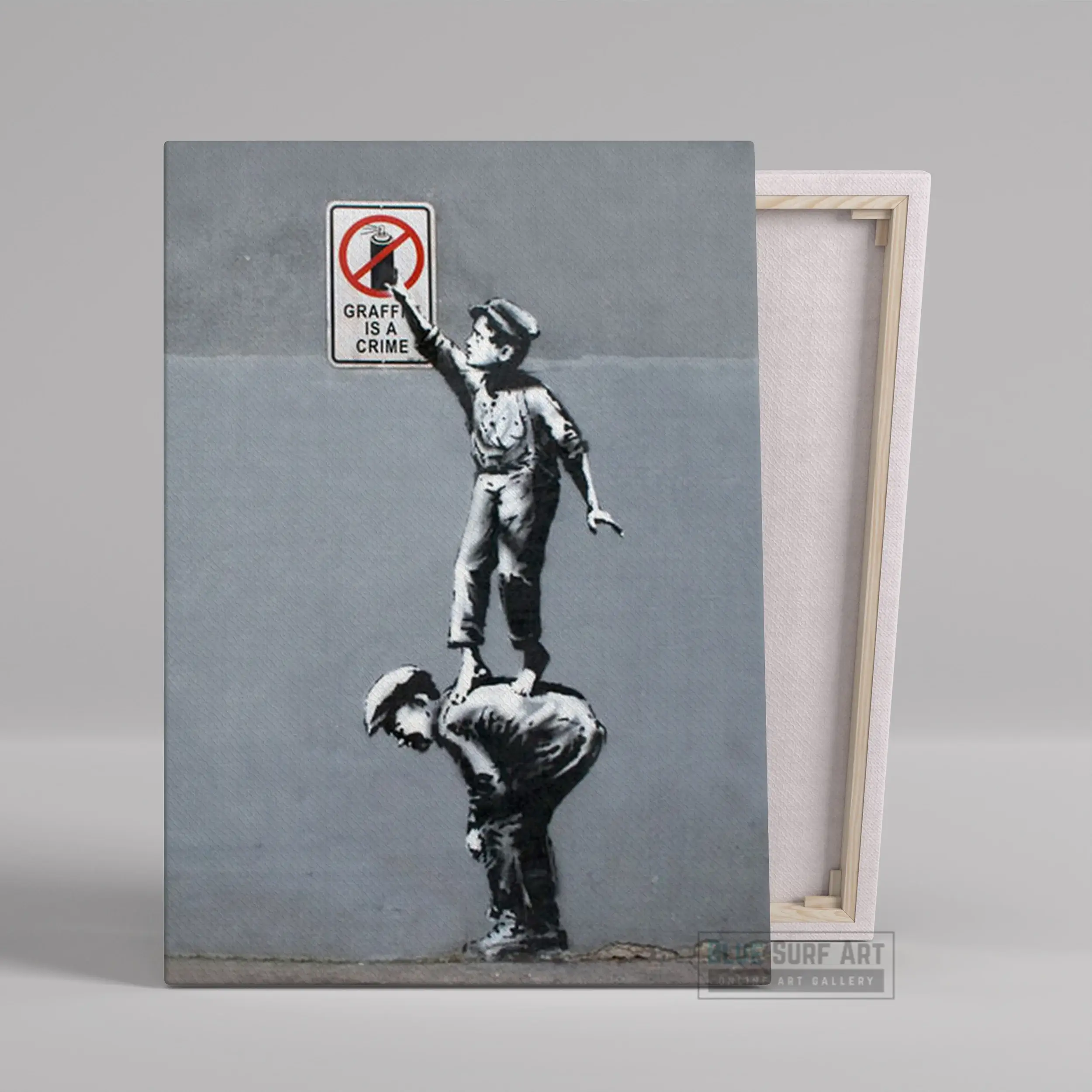 Banksy Graffiti Is a Crime Wall Art, Street Art Handmade Original Oil on Canvas from our street art collection is a Banksy influenced hand painted oil painting on canvas. This painting is only available at Blue Surf Art, designed and painted by an experienced and skilled artist in our in-house studio.