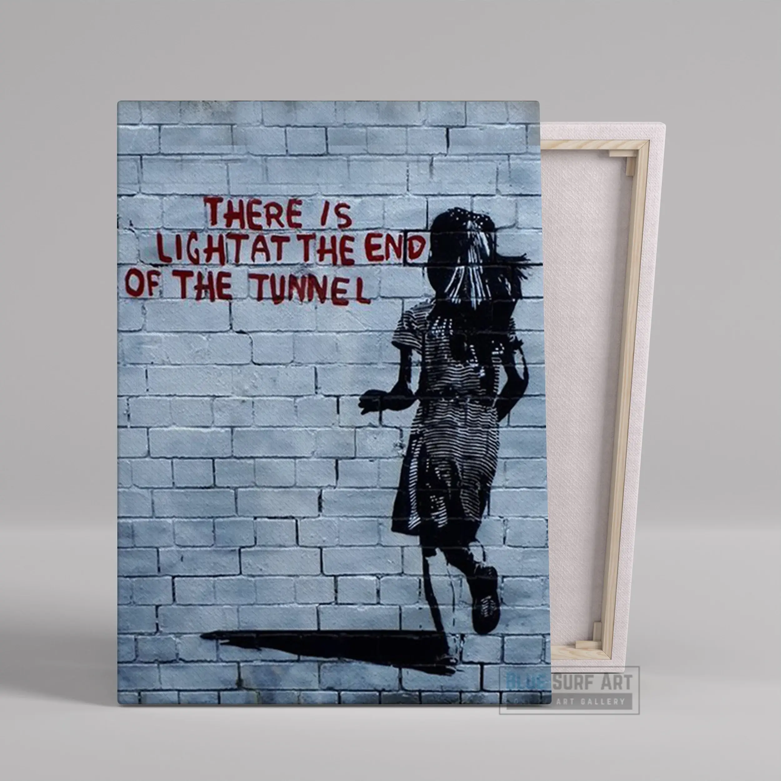 Banksy There Is Light At The End Of The Tunnel from our street art collection is a Banksy influenced hand painted oil painting on canvas. This painting is only available at Blue Surf Art, designed and painted by an experienced and skilled artist in our in-house studio.