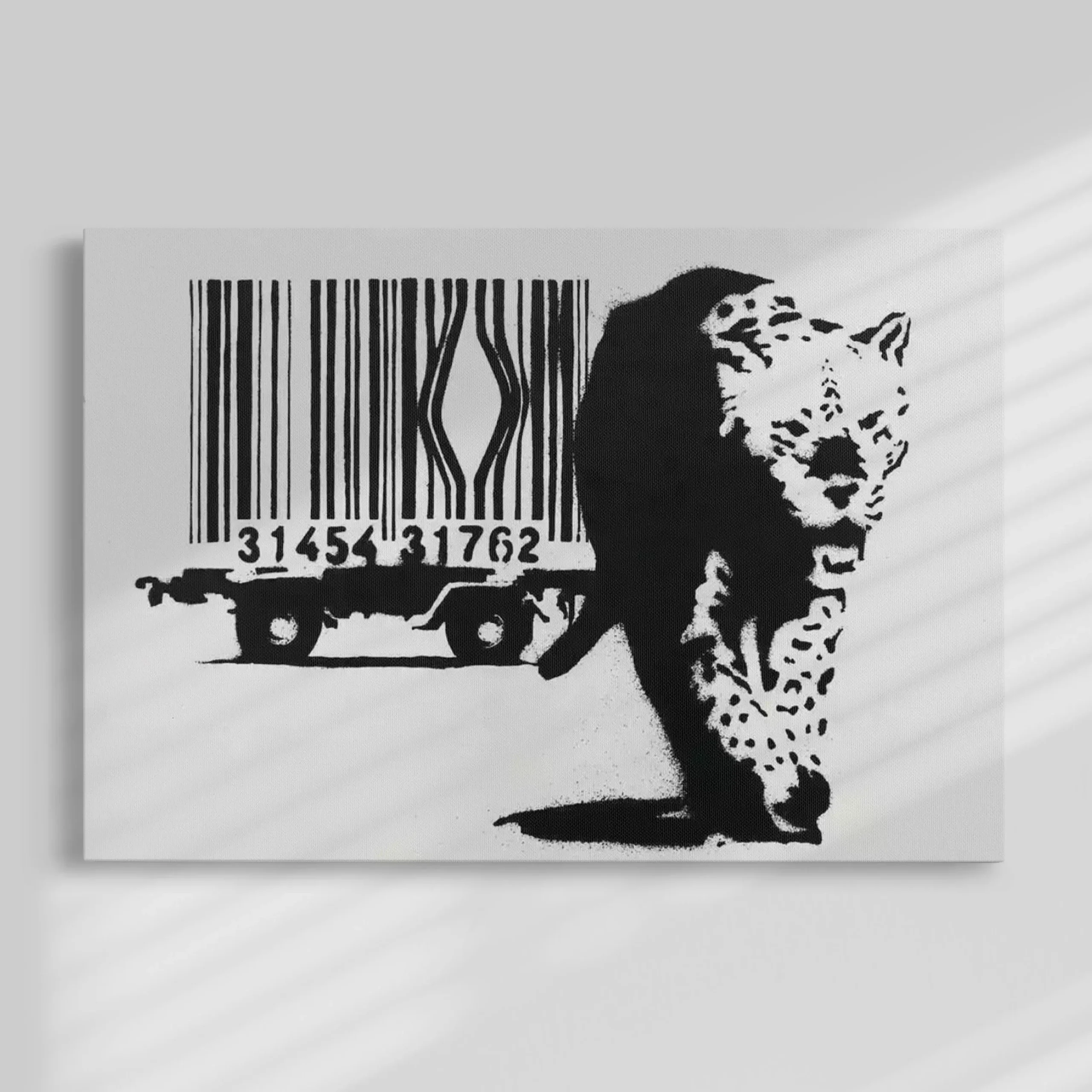 Barcode Tiger Banksy Art, Graffiti Original Handmade Art from our street art collection is a Banksy influenced hand painted oil painting on canvas. This painting is only available at Blue Surf Art, designed and painted by an experienced and skilled artist in our in-house studio.
