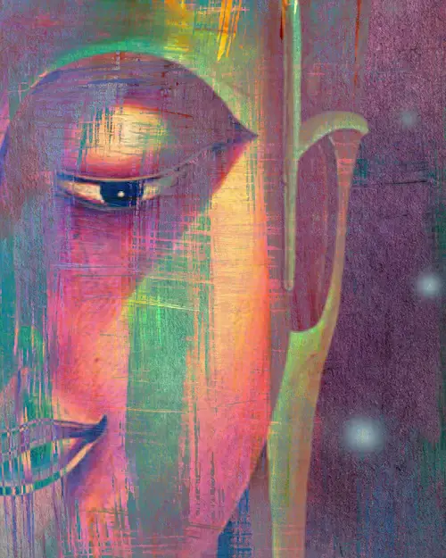 Multi Colour Buddha Portrait in Abstract Style
