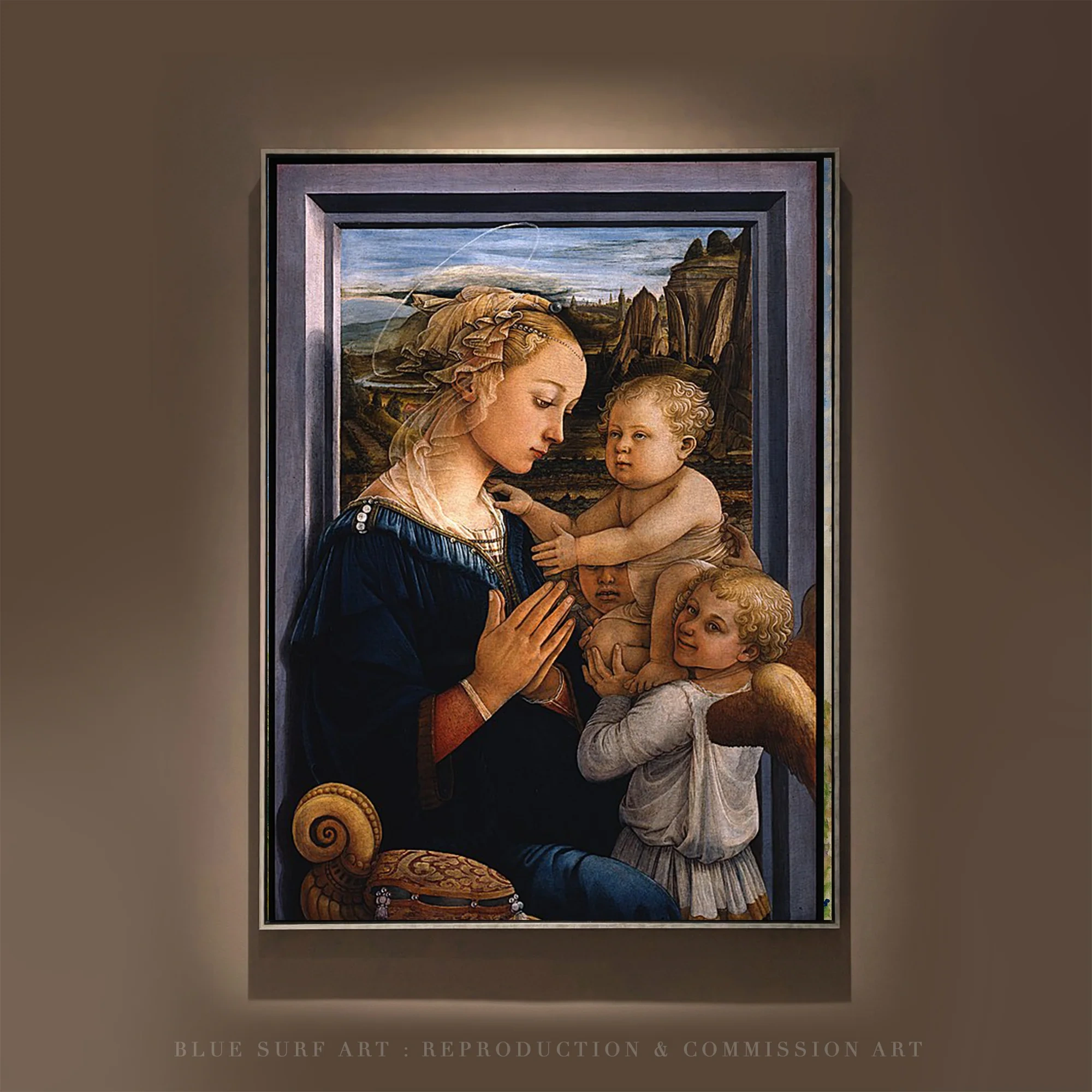 he Madonna and Child by Fra Filippo Lippi can be reproduced with the same emotions of the original masterpiece. In our in-house studio artists carefully recreate the painting detail-by-detail, colour-by-colour to near perfection.